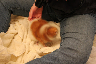 Yes, we did have veggies - once all the girls were back in their cage, we fed them the tips of the carrots we bought for dinner tonight. We were thus forgiven.