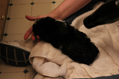 Bathing Sarah turned out to be more of an endeavor... Not only did she not quite fit in the sink, but also at several points Brenda had to hold her to scrub her, turning bath time into a wet t-shirt contest.